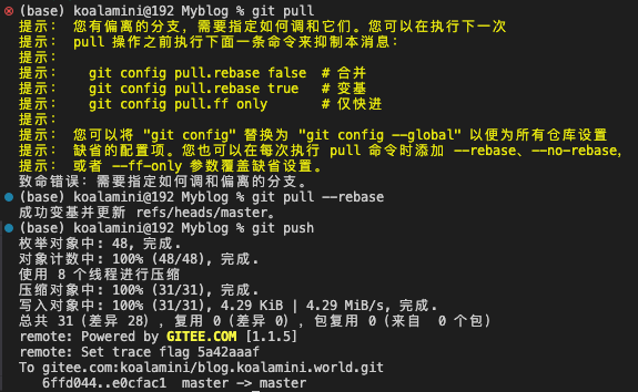 这种情况下会出现致命错误:需要指定如何调和偏离的分支提示,如下图所示: