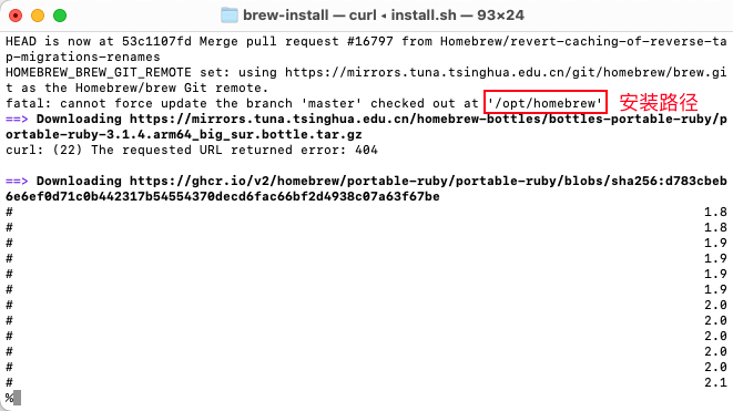 因为国内环境的缘故,用清华大学镜像站安装 homebrew