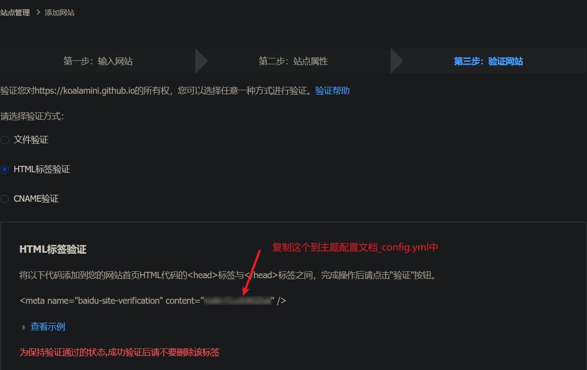 返回百度站点验证网页,点击【完成验证】