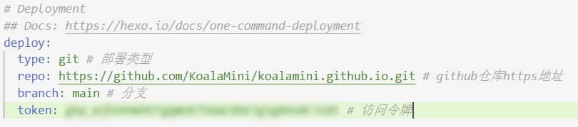 hexo deploy部署到 github 仓库,缩写为hexo d - 浏览器打开博客网址,例如:https://koalamini.github.io/